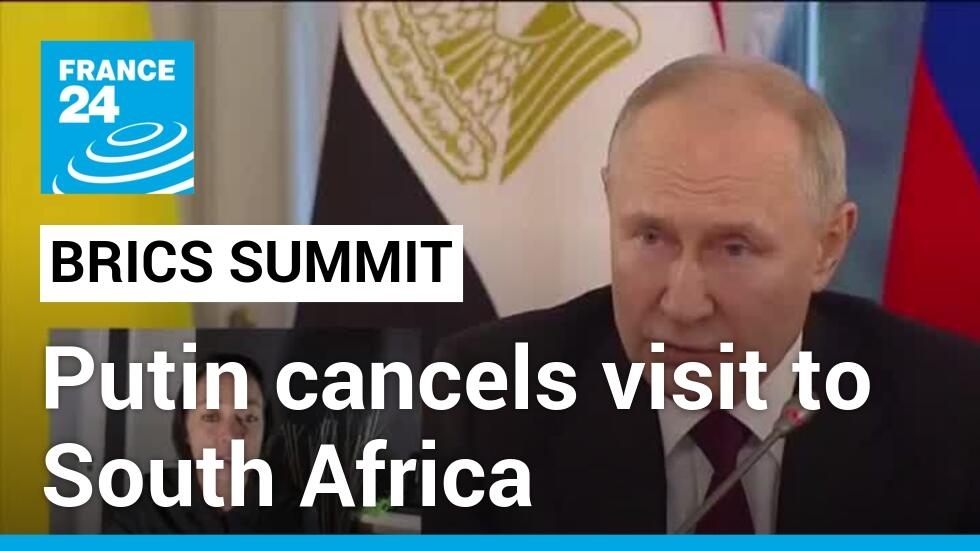 In South Africa , presidency announced that President Vladimir Putin would not be attending the BRICS summit (Brazil, Russia, India, China and South Africa) scheduled for next month in Johannesburg. Russia will be represented by Sergei Lavrov. FRANCE 24's correspondent in Cape Town Robyn Smith tells us more.